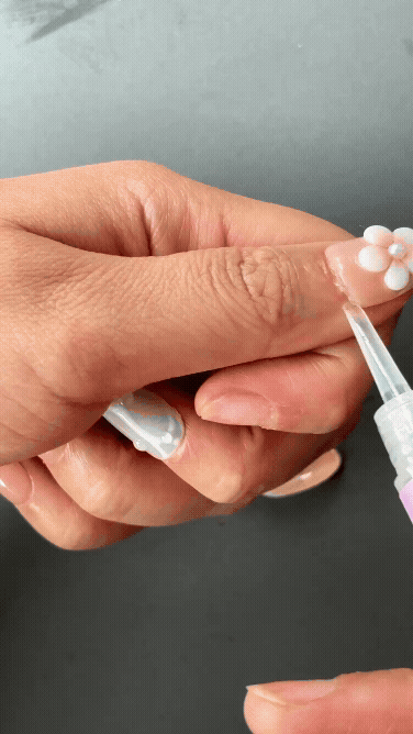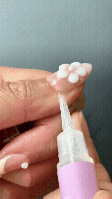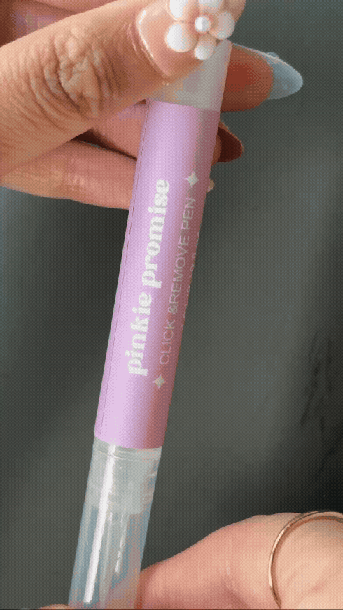 Use the remover pen to apply remover fluid onto the gel residue on the back of the press-on. Then, use the sharp tip to gently separate the gel from the nail.