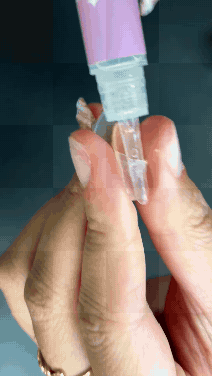 Insert the tip of the Click & Remove Pen into the nail seam. Press once to dispense the remover, then wait for 10 seconds.