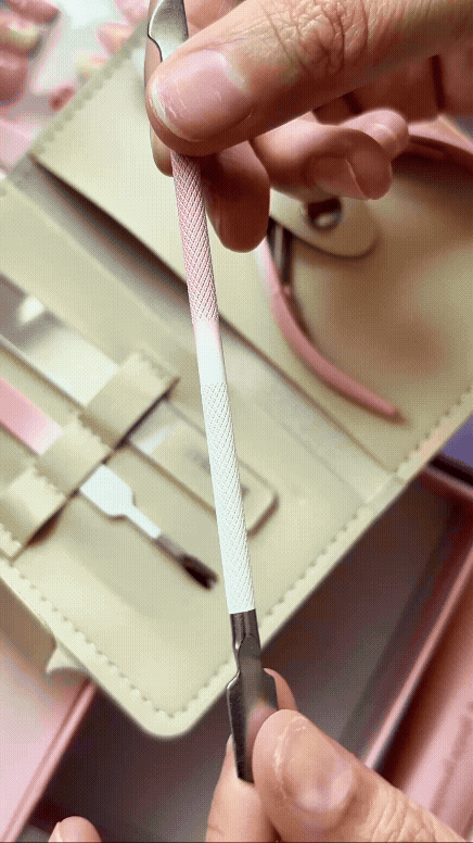 Gently push back skin around the nail edges using the Cuticle Pusher, even if invisible.